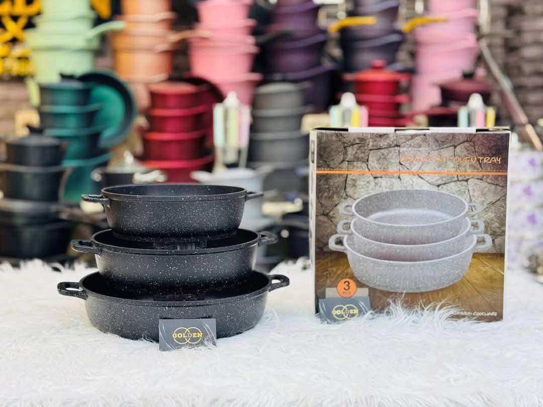 طقم صواني الجرانيت من ماركة وان سافلون (One Saflon) مميزات طقم صواني الجرانيت وان سافلون: إليك بعض المميزات الشائعه لطقم الصواني الجرانيت😍😍 1.جودة عالية: مصنوع من طبقات جرانيت مقاومة للخدوش و