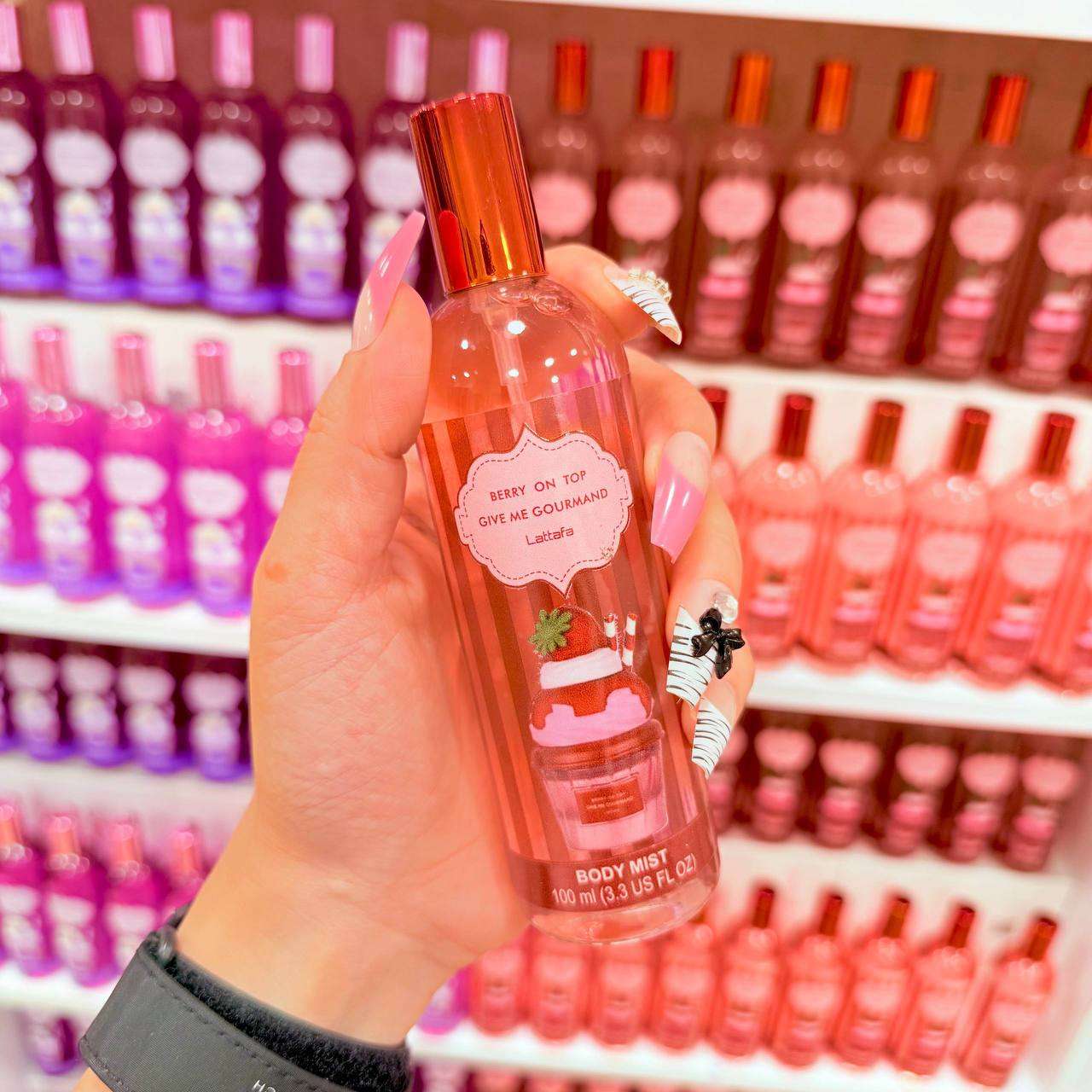 🍰✨ حلاااااااااااااااااااااااوة في شكل اسبلاش 😍 مجموعة Give Me Gourmand من لطافه وصلت ومفيش أحلى من كده 💖 كل ريحة فيهم كأنك داخلة محل حلويات فخم 😋 💗 Berry On Top فراولة وكريمة فانيليا ناعمة.