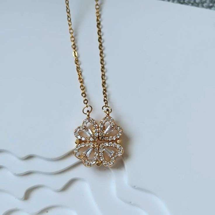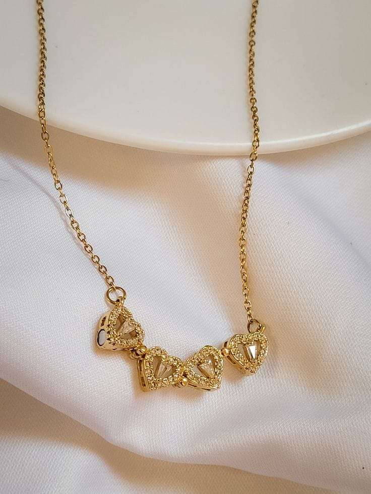 لمعة أنوثة وأناقة في تصميم واحد ✨ •مصنوعة من ستانلس ستيل بيور مطلي جولد بليتد 💎 •ما بتصدّيش، ما بتغيّرش لونها، ولمعتها بتفضل ثابتة •تصميم أنثوي يجمع بين القلوب والزهرة الرباعية (رمز الحظ