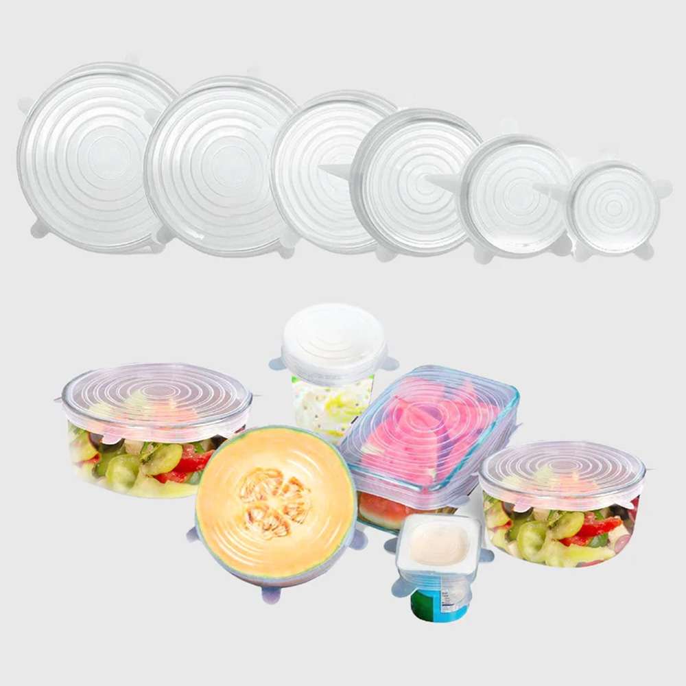 • حافظ على الأكل من انه يبوظ مع عرض أغطية السيليكون وغطا الحلة متعدد الاستخدامات. • هتقدر تخزن بسهولة كل الأكل اللي انت عامله • رفايع مطبخك مبيكملش غير بيها •• أغطية السيليكون: • آمنة للغسل في