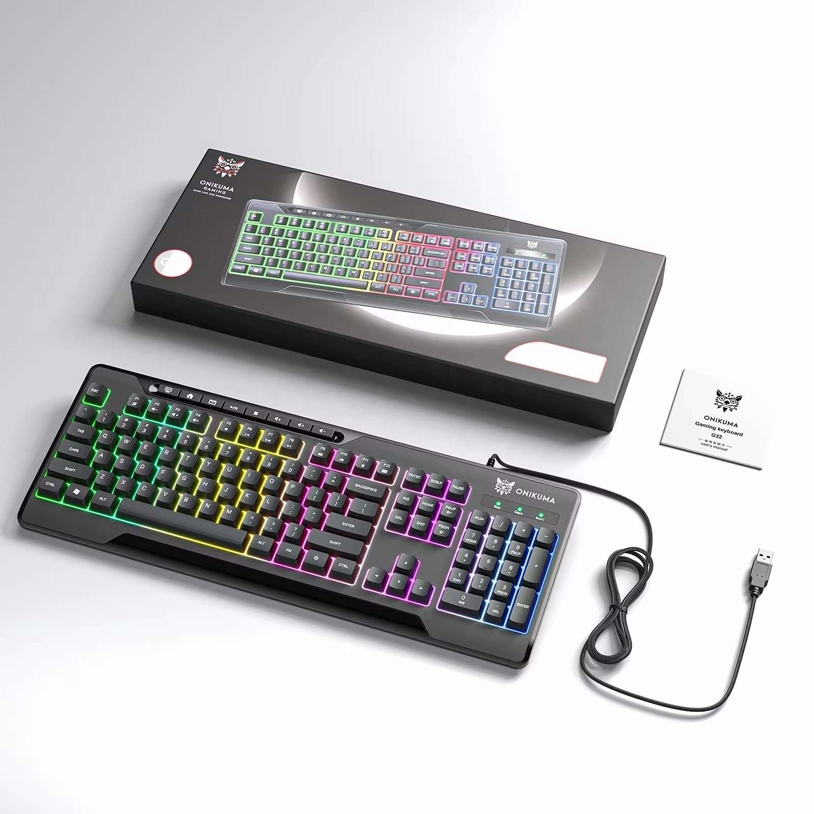 أونيكوما لوحة مفاتيح سلكية للالعاب باضاءة خلفية (G32)