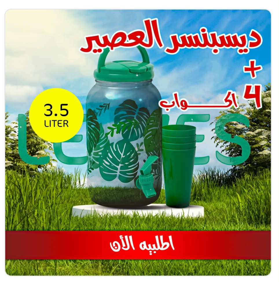 • ديسبنسر العصير + 4 اكواب للعصير ديزاين Leaves 3,5 Liter