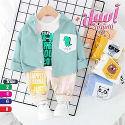 طقم اولادى 3 قطع,جاكيت جباردين وبنطلون جينز رباعية وتيشرت سنجل قطن٤٨٠ج.م