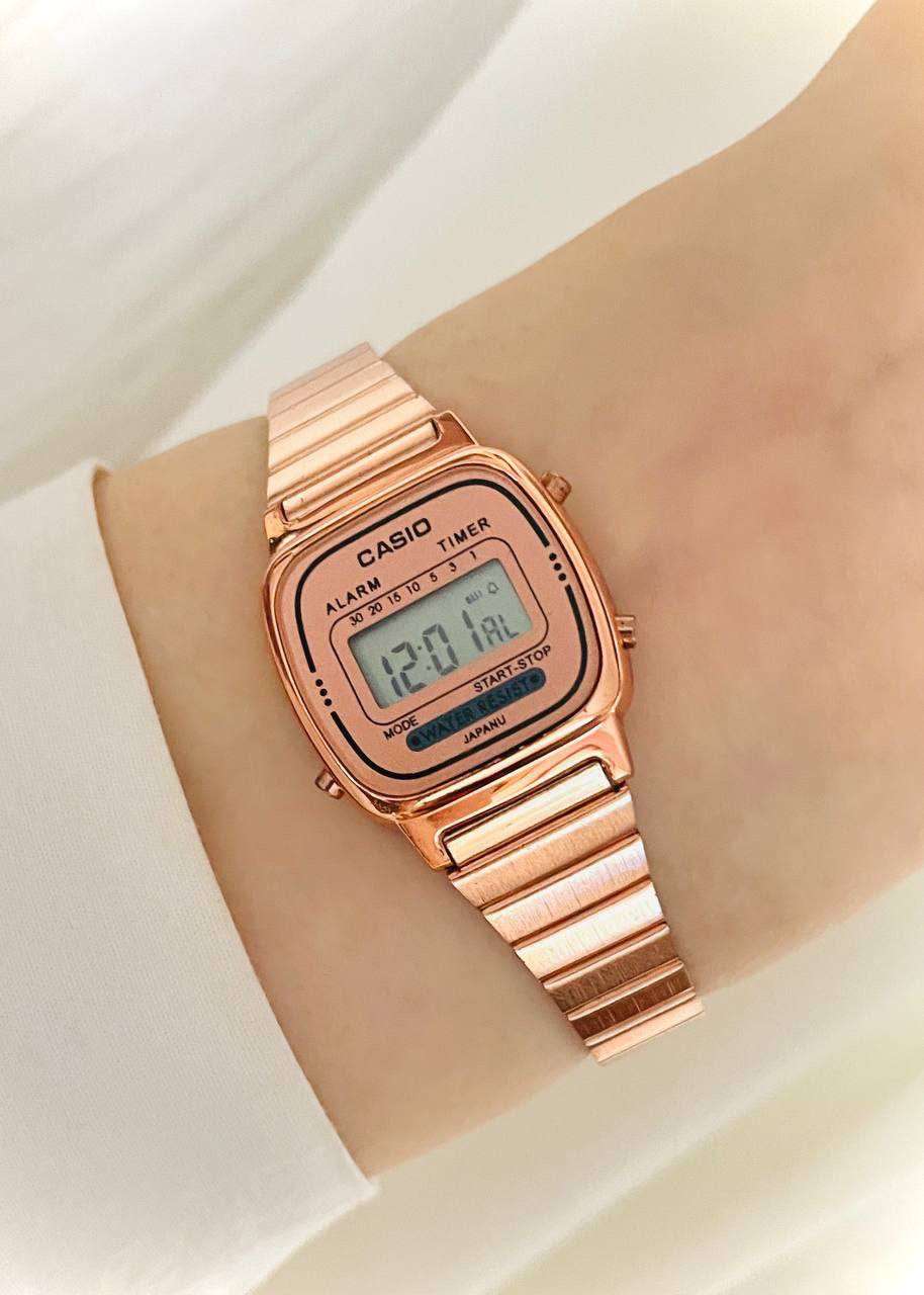 CASIO💥 كاسيو ياباني كلاسيك المقاس الصغير ظرف صلب واستيك صلب وغطاء ستانلس ستيل زجاج مقاوم للخدش طلاء ثابت IPG ✨ منبه⏰ ستوب واتش 🌍 الساعه والنتيجه والتاريخ بالارقام واسم اليوم مع ظهور كل ده في شاشه
