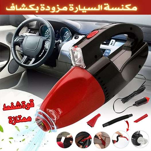 مكنسة سيارة تعمل على ولاعة العربية 12V مزودة بكشاف