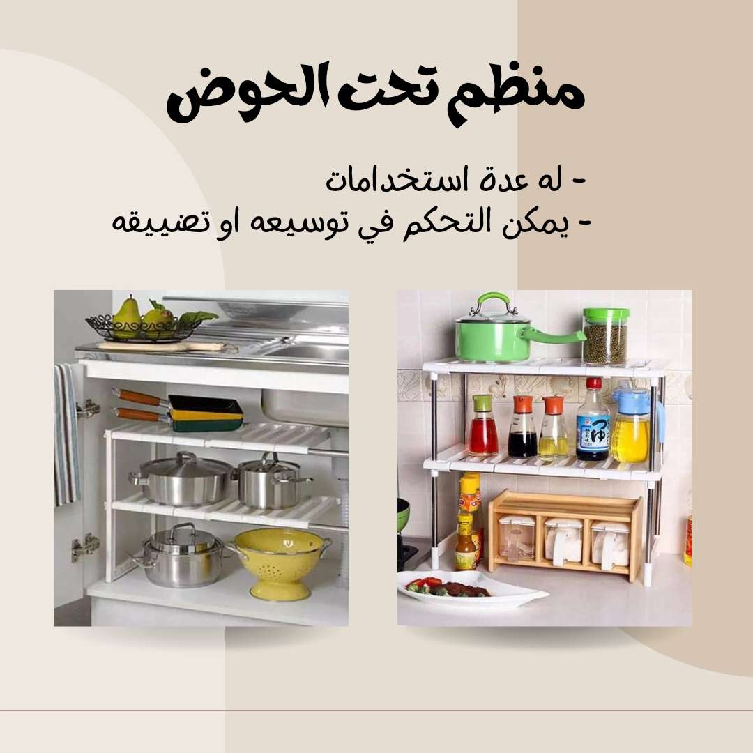منظم تحت الحوض ♥️ من خلالها هنقدر نستغل المساحة ف المطبخ وتحت الحوض، تستخدم لتنظيم ادوات المطبخ و ادوات النظافة الخاصة بالمطبخ ، تنظيم اسفل الدولاب متعددة الاستخدامات، الخامة معدن بأرفف بلاستيك، يمكن