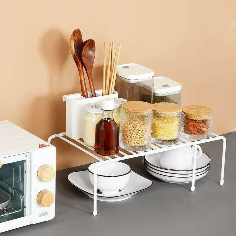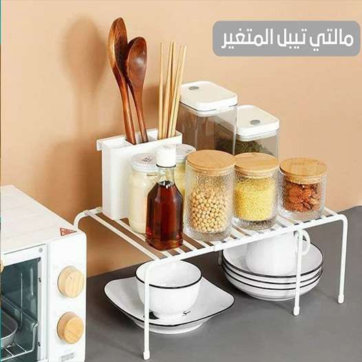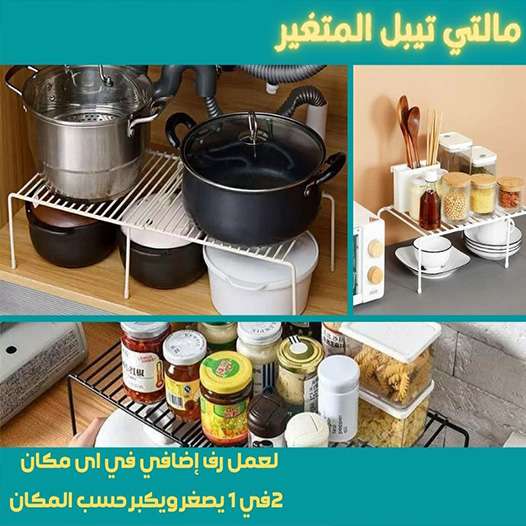 مالتي تيبل زوجي المتحرك او المتغير لعمل رف إضافي في دولاب المطبخ والملابس وتحت الحوض ولتنظيم اطباق واتوابل 2في واحد يصغر ويكبر حسب المكان متاح باللون الاسود والابيض =============================== الح