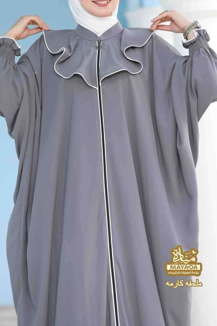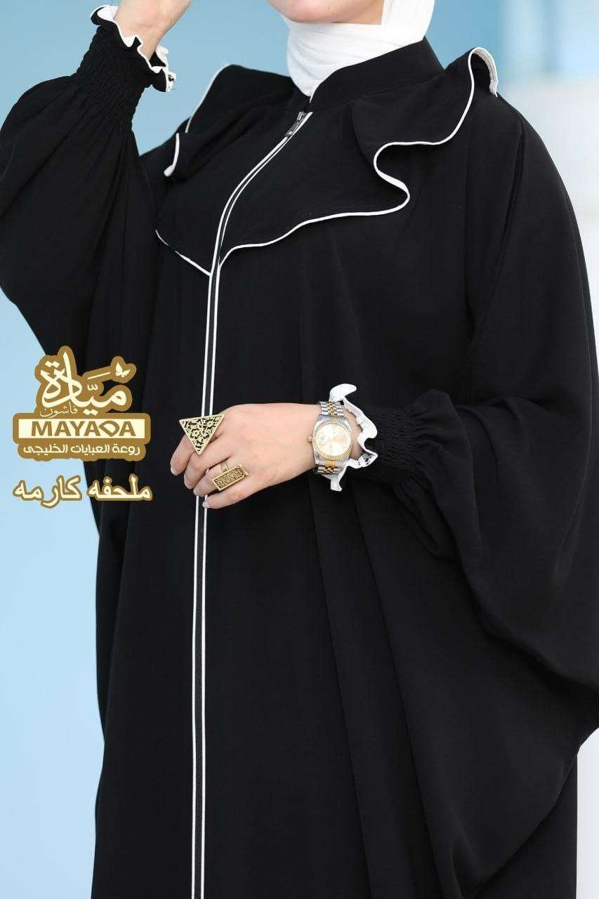 🔥 قسم كيان للمحجبات ✨الجديد من براند ميادة ✨موديل / كارمة 💥 ملحفة بديزاين رقيق ساتر واسع فضفاض، مُطعمة بِـ بييه أبيض، مُزودة بسوستة بطول الملحفة ✨ الخامة / ماتريال كريب سعودي عالي ال