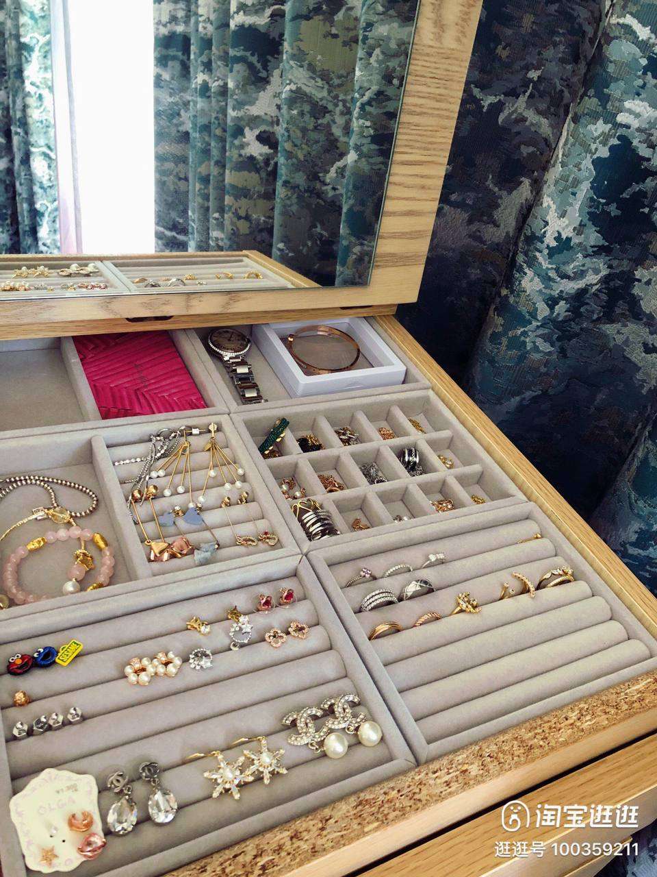* الطقم عباره عن ٤ قطع مختلفة * الخامة قطيفة * اللون رمادي * يمكن وضعها في درج التسريحة لتنظيم الاكسسوارات