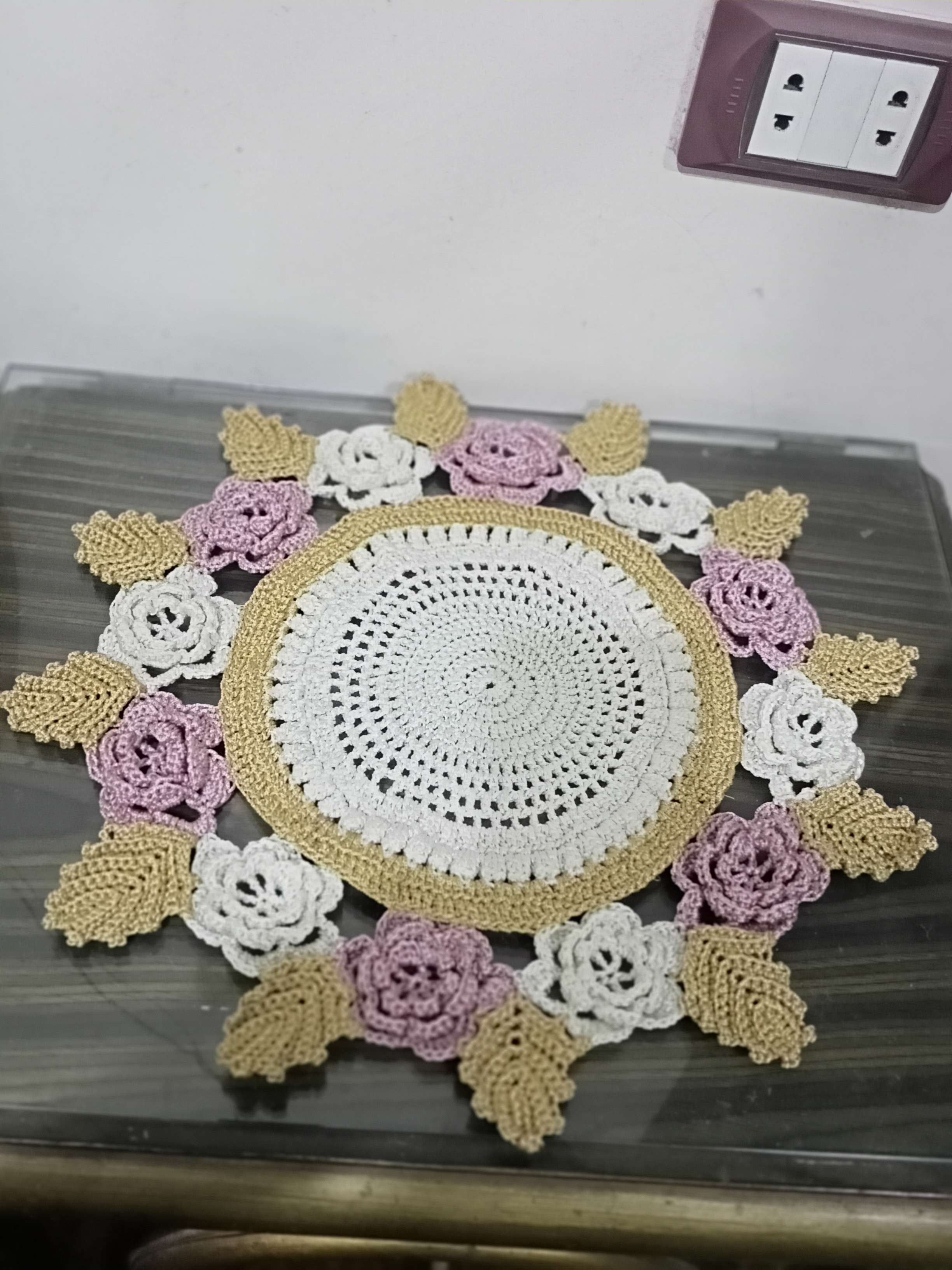 مفرش كروشيه الورود الخيط حرير