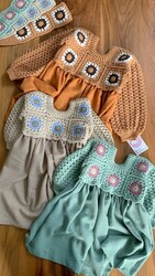فساتين اطفال كروشيه مع قماش٣٥٠ج.م١,٨٦٤