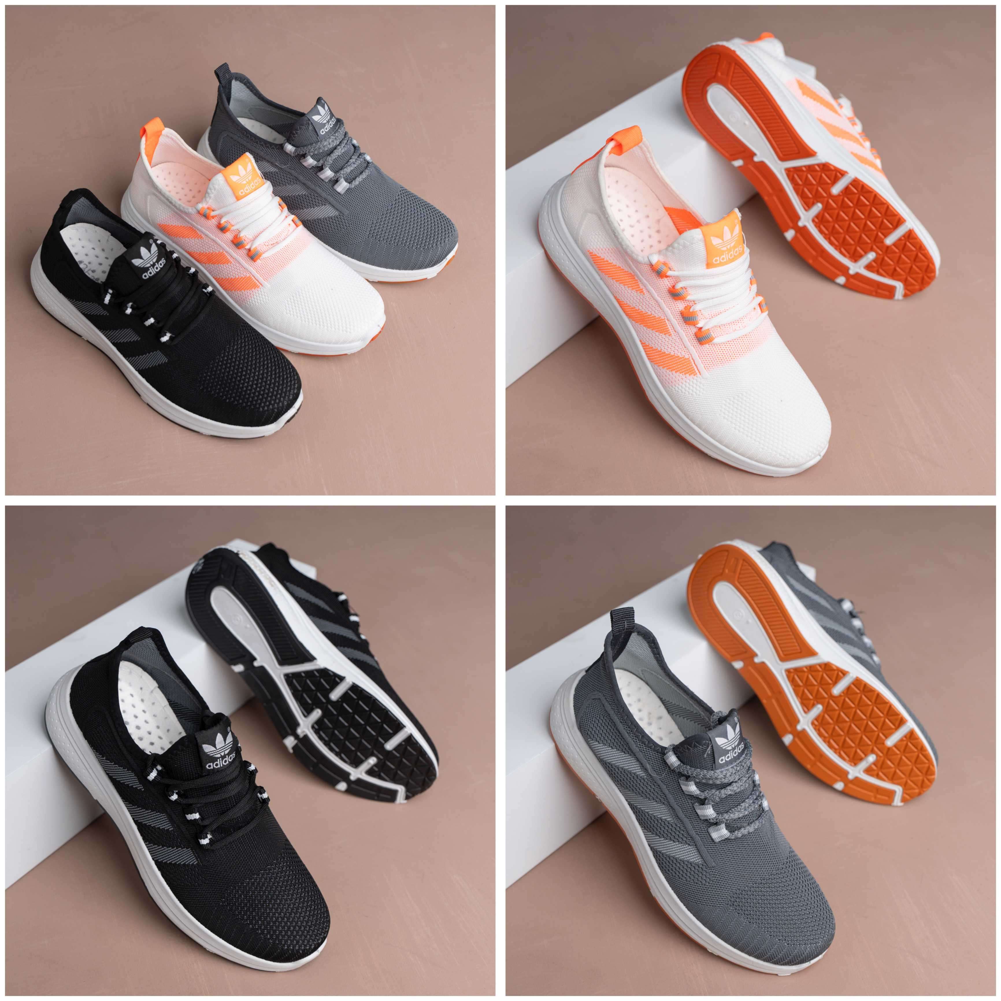 حذاء تريكو أديداس عالي الجودة بتصميم مميز نعل مرن جداً PVC فرش طبي وألوان ( أبيض , أسود , رمادى ) المقاسات ( 41 42 43 44 45 )