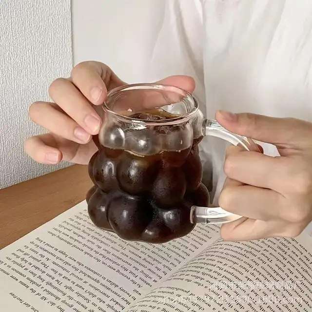 Glass Cup Bubble Tea Glass Drinkware Boba Kawaii مج زجاج بابلز ❤️ خاامة زجاج حراري..مستورد سعة 390 ملي المج  بسعر 110 جنيه😍