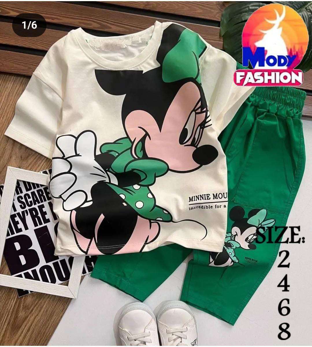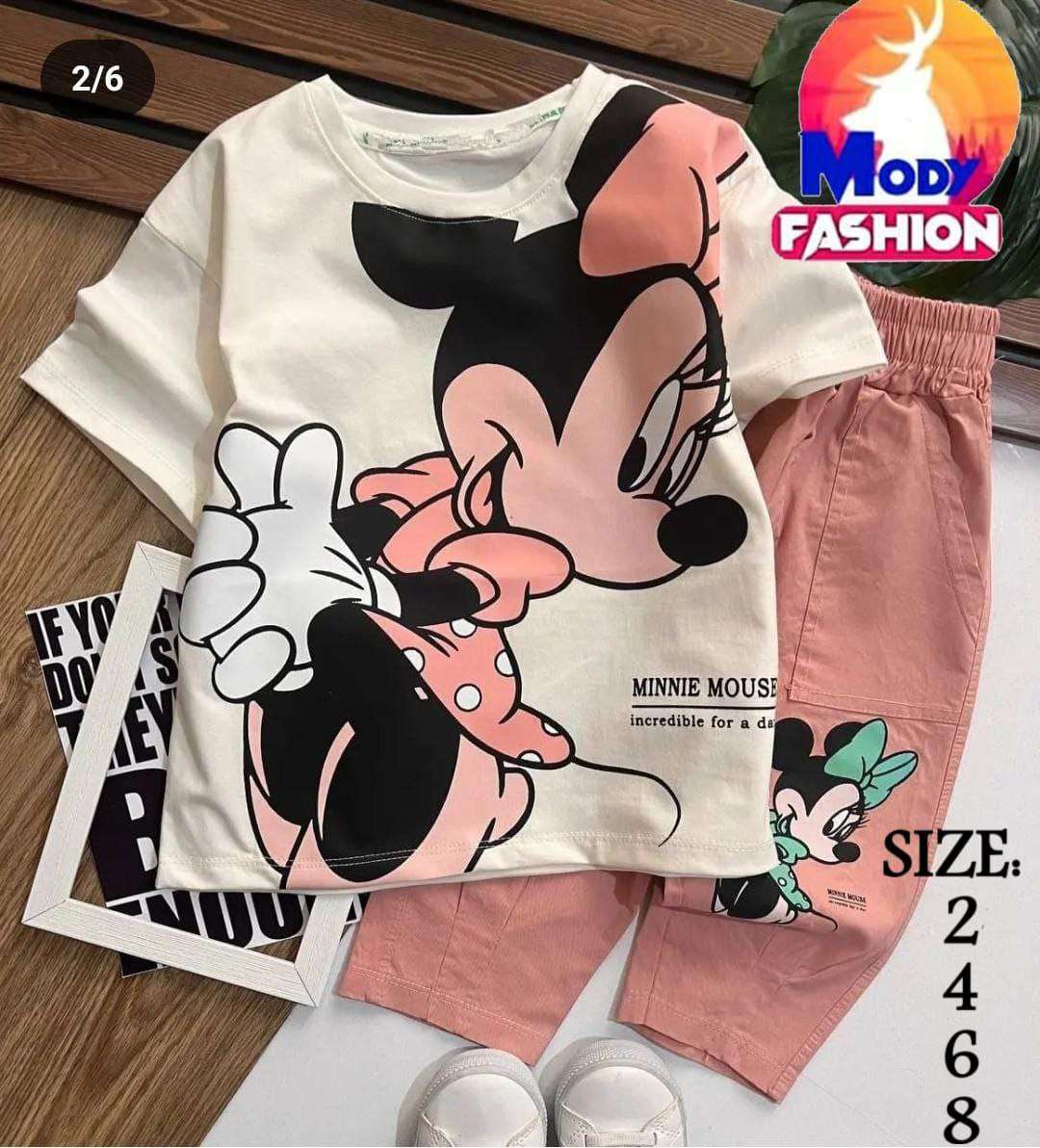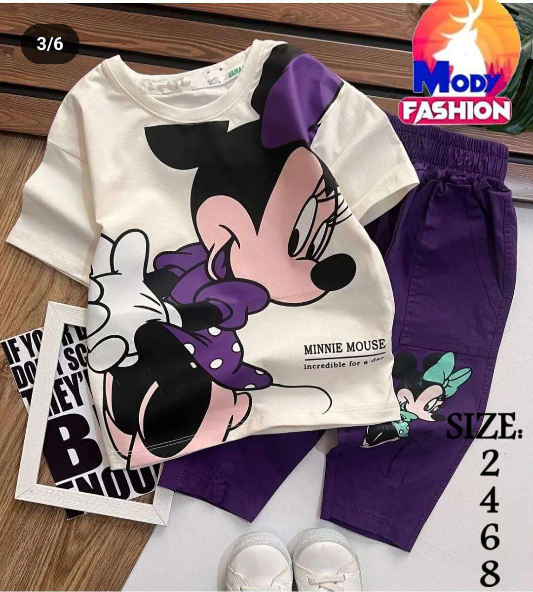 🌸موديل بناتي خروج قمرييين 🌸 🔥 موديل بناتي ميكي دلع دلع دلع للخروجات الالوان الوان العرض 🪡 المقاسات ٢ ٤ ٦ ٨ الخامه *تيشرت سينجل قطن* *بنطلون جبردين* *خرووووج* * يعني