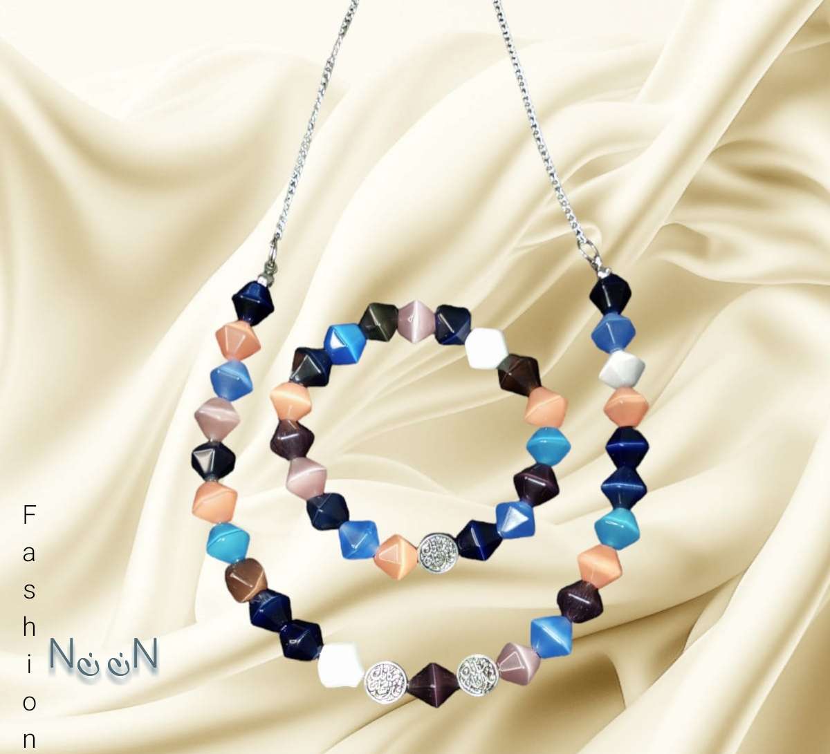 الرئيسيةعقد وأسورة من حجر عين النمر بألوان جذابة