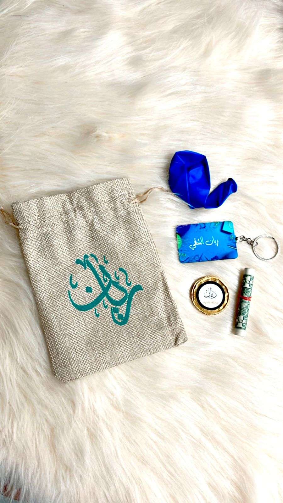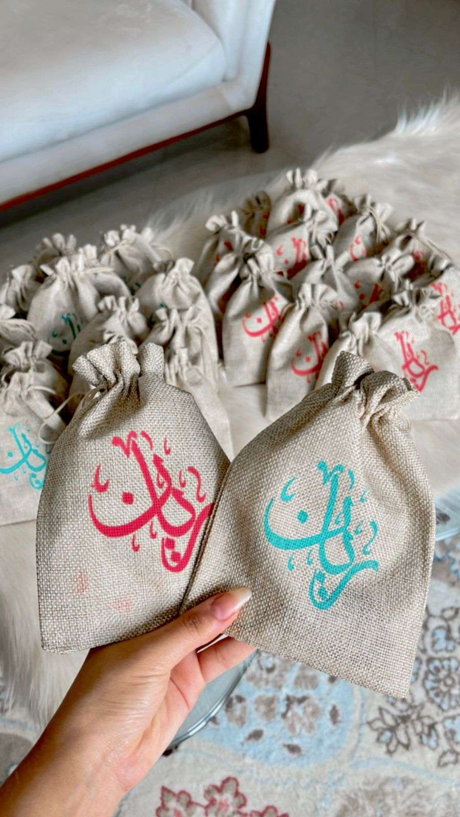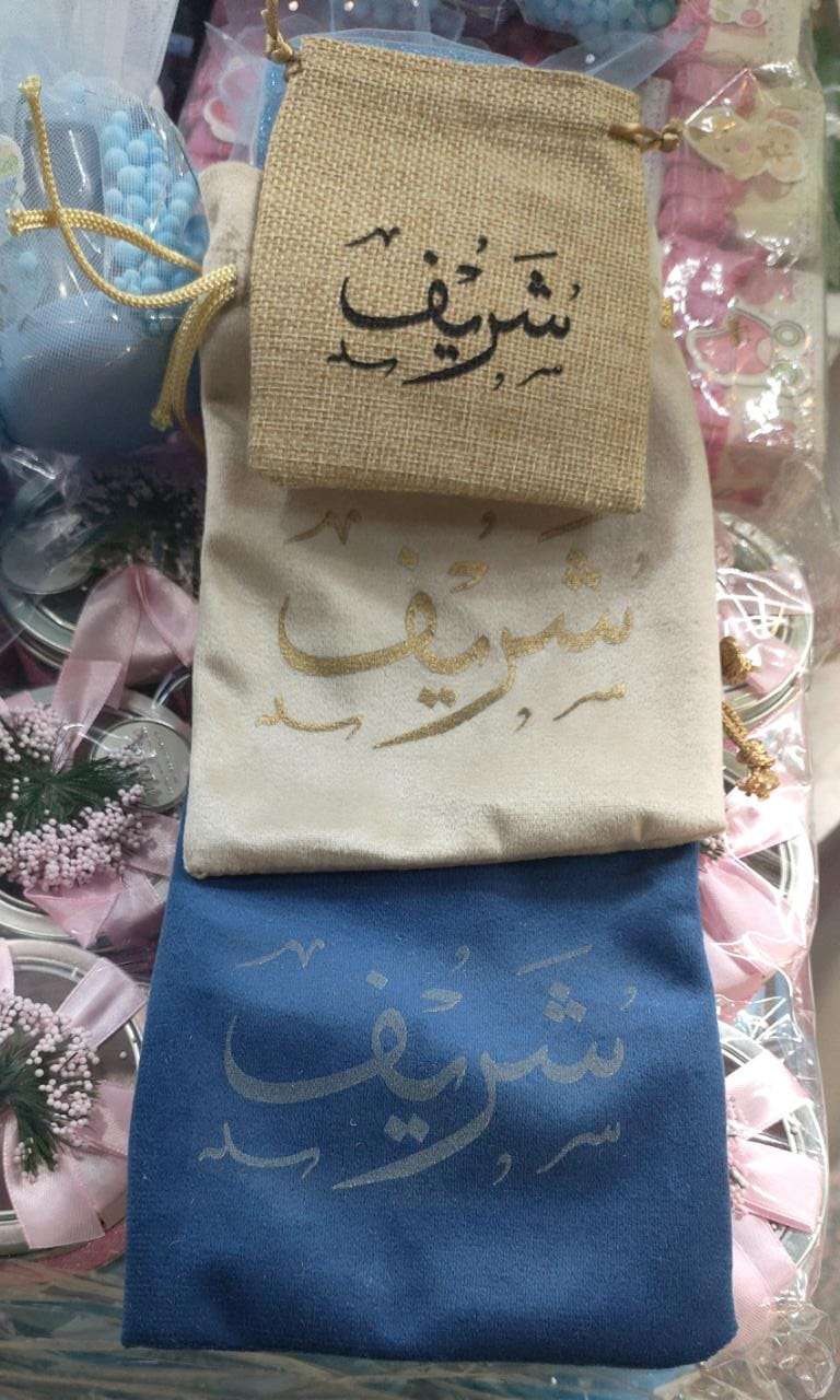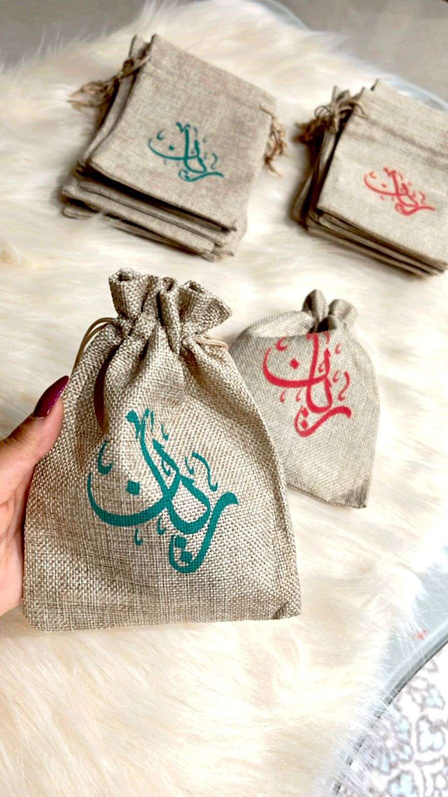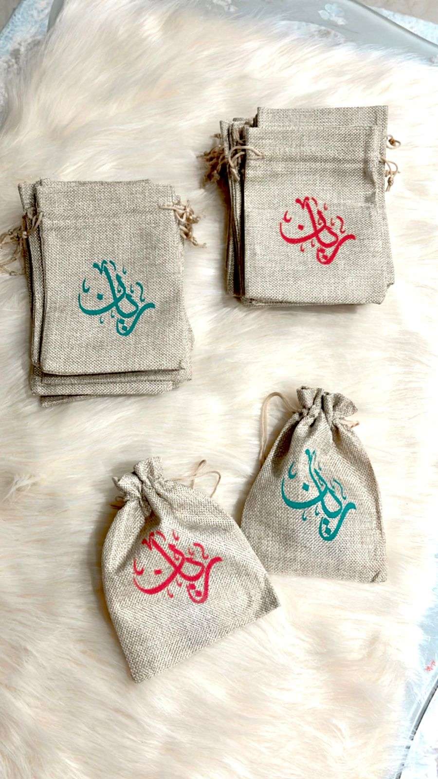 كيس خيش مطبوع عليه اسم البيبي والتاريخ باي لون ينفع لهدايا السبوع والافراح https://www.facebook.com/groups/211400489786684/