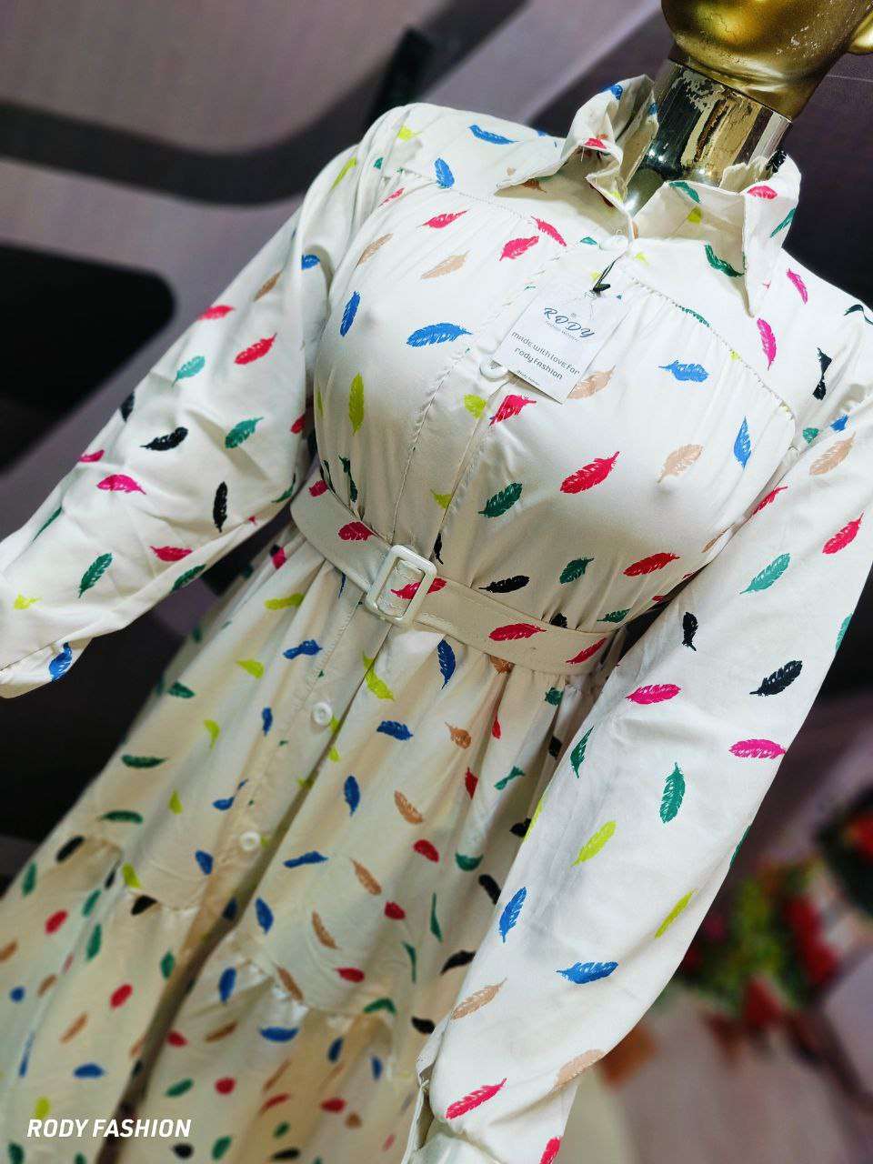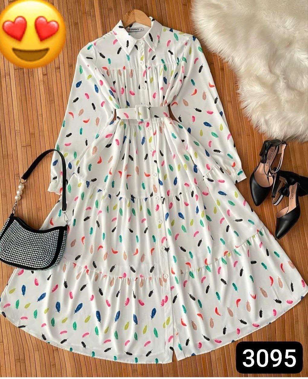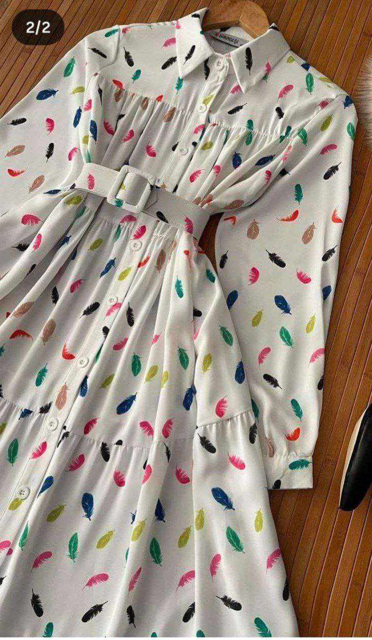الموديل دريس مشجر ريشه زراير بحزام المقاس💥💥ون سايز تلبيس ل85.90ك مرتاح الماتريال💥CBHمطبوع مستورد عالى الجودة❤️