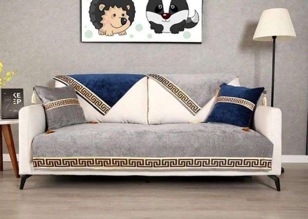 طقم بياضات انتريه شانيل خامات تقيله واصليه مش تقليد عدد  10قطع كبيره مقاس 195*70 تقريبا 1كنبه صغيره مقاس150*70تقريبا 2كرسي مقاس70*70تقريبا 6مناديل مقاس35*35 تقريبا Co26D55SRY