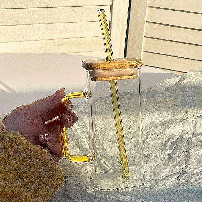 🔥💪🏆💥🥇 كوب شاليموا مربع بيركس بغطاء خشب مستورد بايركس مستورد زجاج بيستحمل حراره وبروده 😋😋 سعه400مل بغطاء خشب و معاه شاليموه زجاج