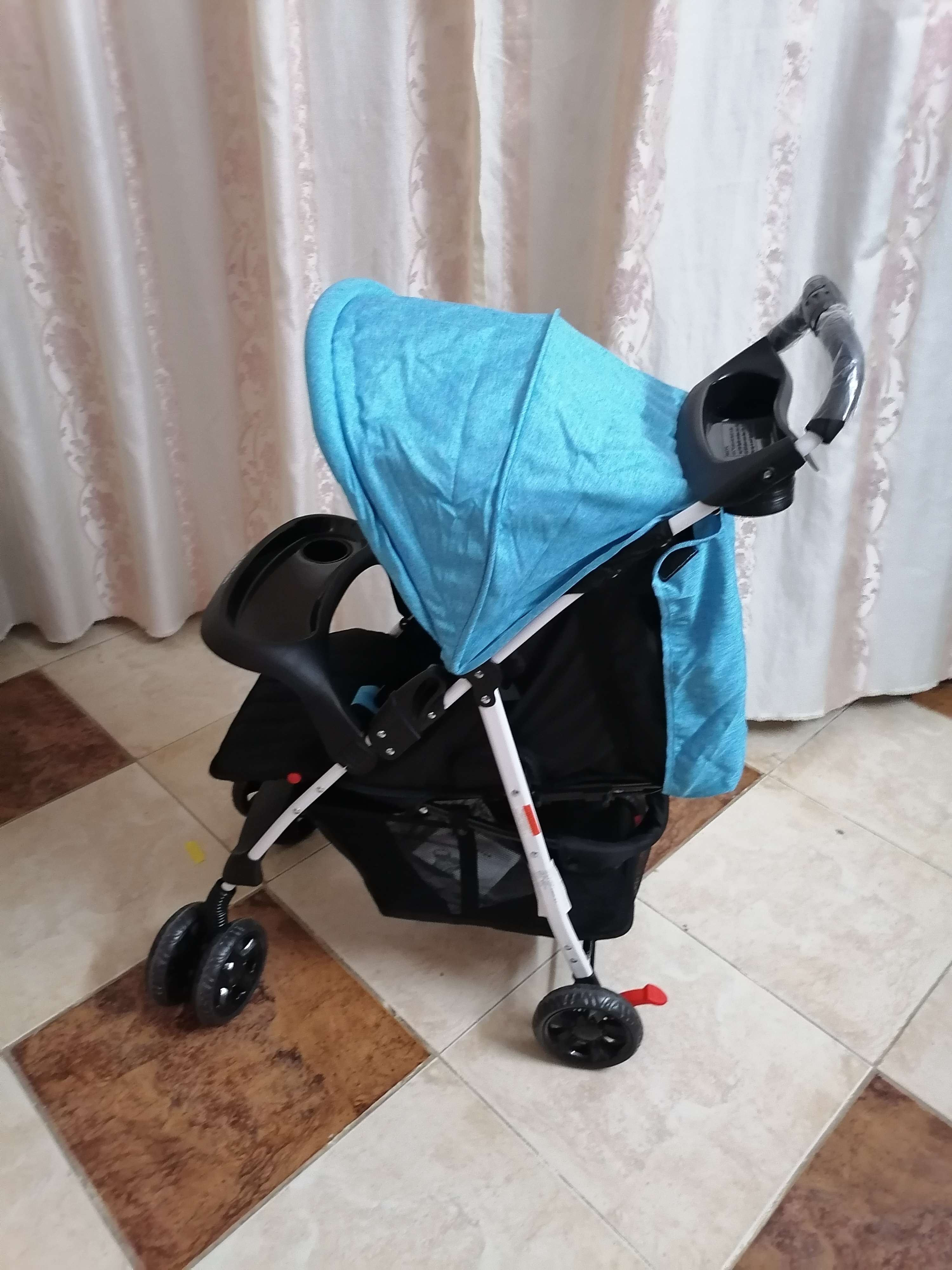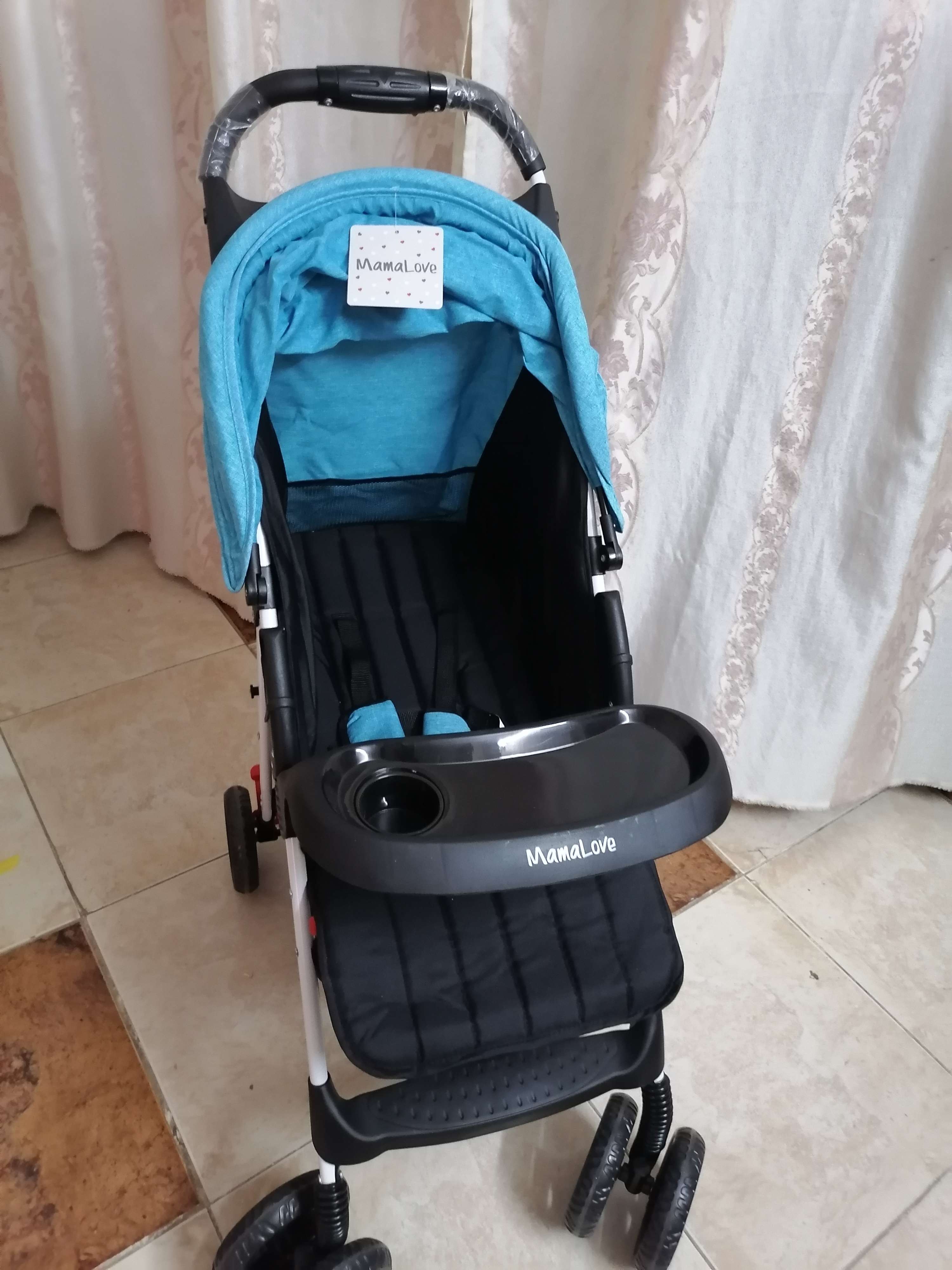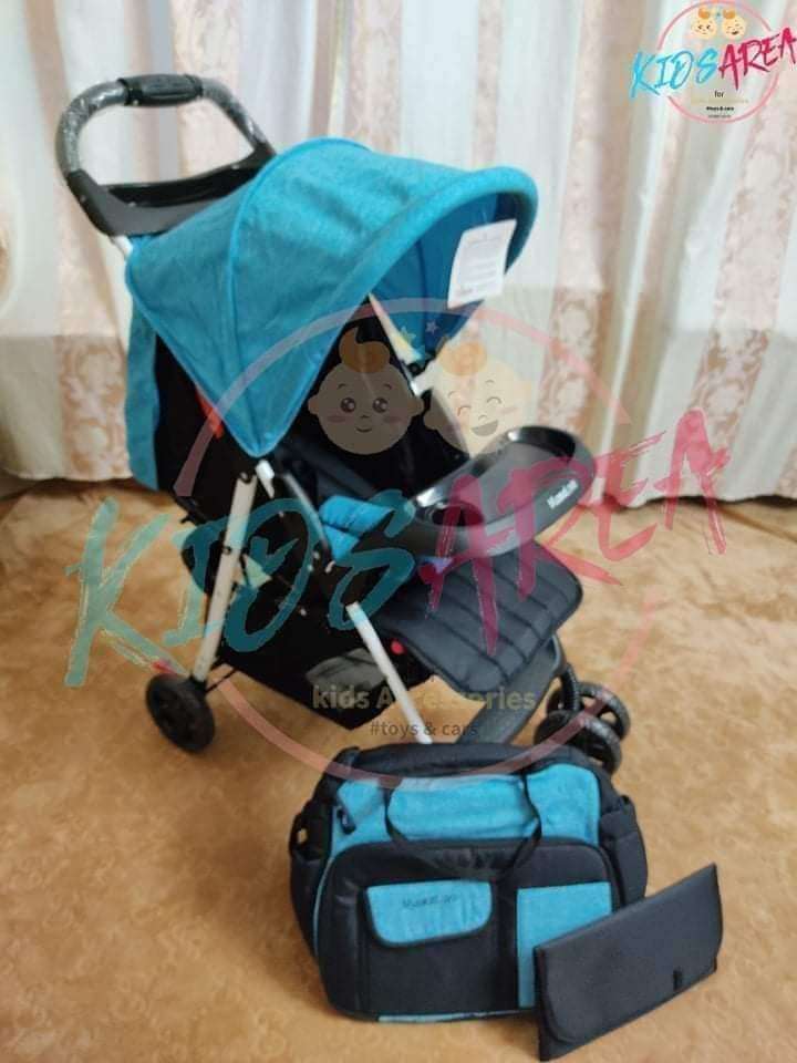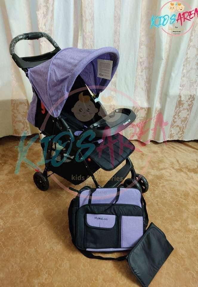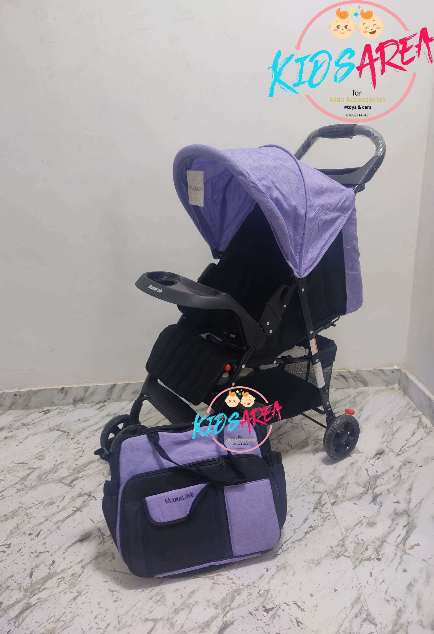 عربية اطفال خفيفة و خفيفة الحركه معاها شنطة من نفس القماش مستويات منها سرير كامل 2 بار بار طعام للطفل و بار للام فرامل خلفية
