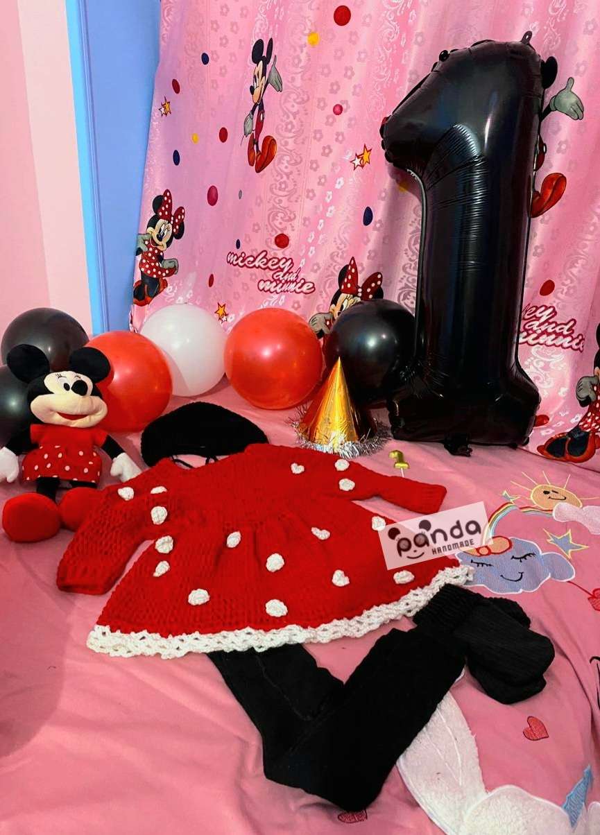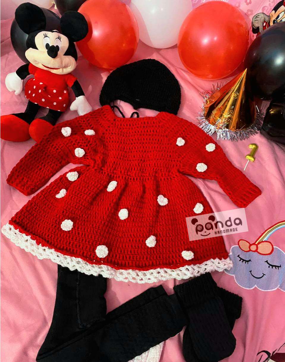 فستان كروشيه اطفال الخامة صوف او قطن فستان عيد الميلاد فستان ميمي ماوس للاطفال متاح تنفيذ اي شخصية لاي مقاس السعر يختلف حسب المقاس
