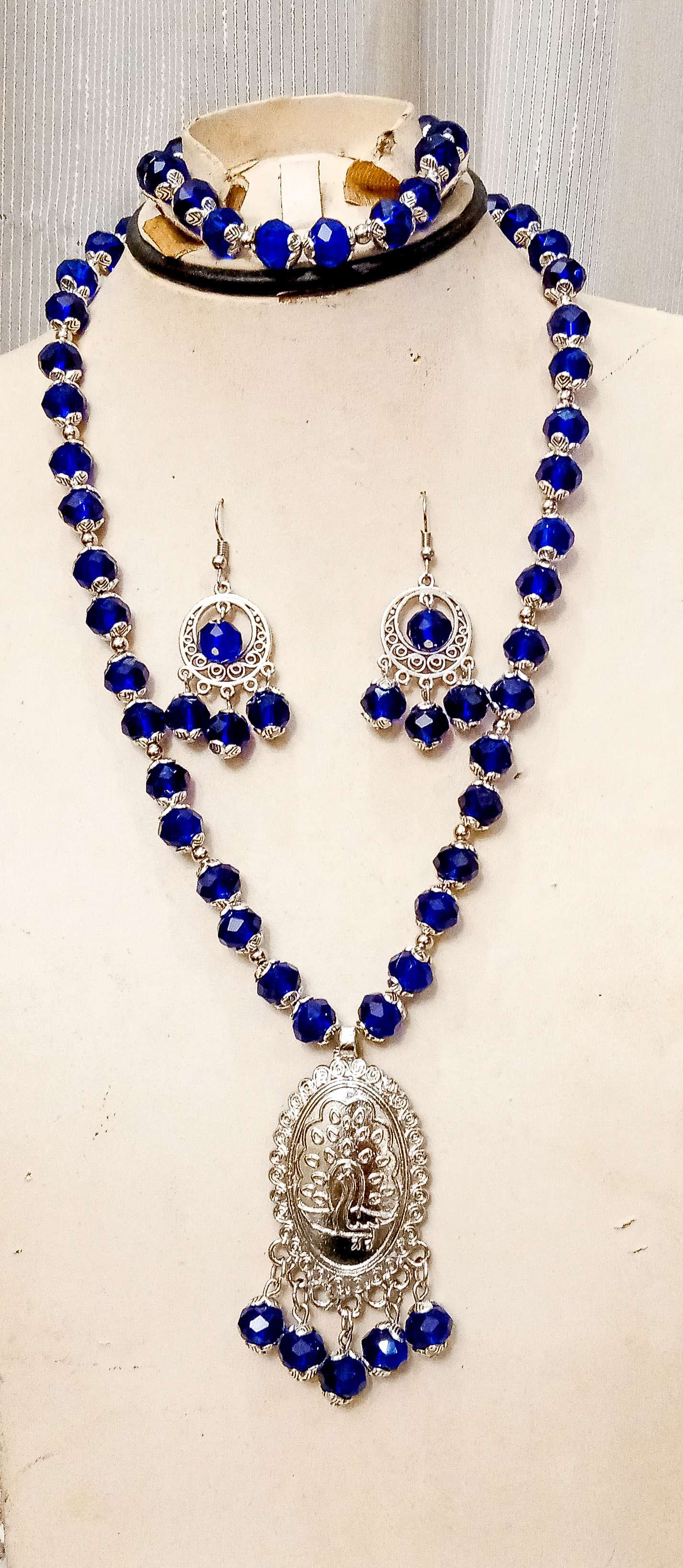 الرئيسيةطقم كامل اكسسورات روعة من الكريستال الازرق والعقد متوسط الطول