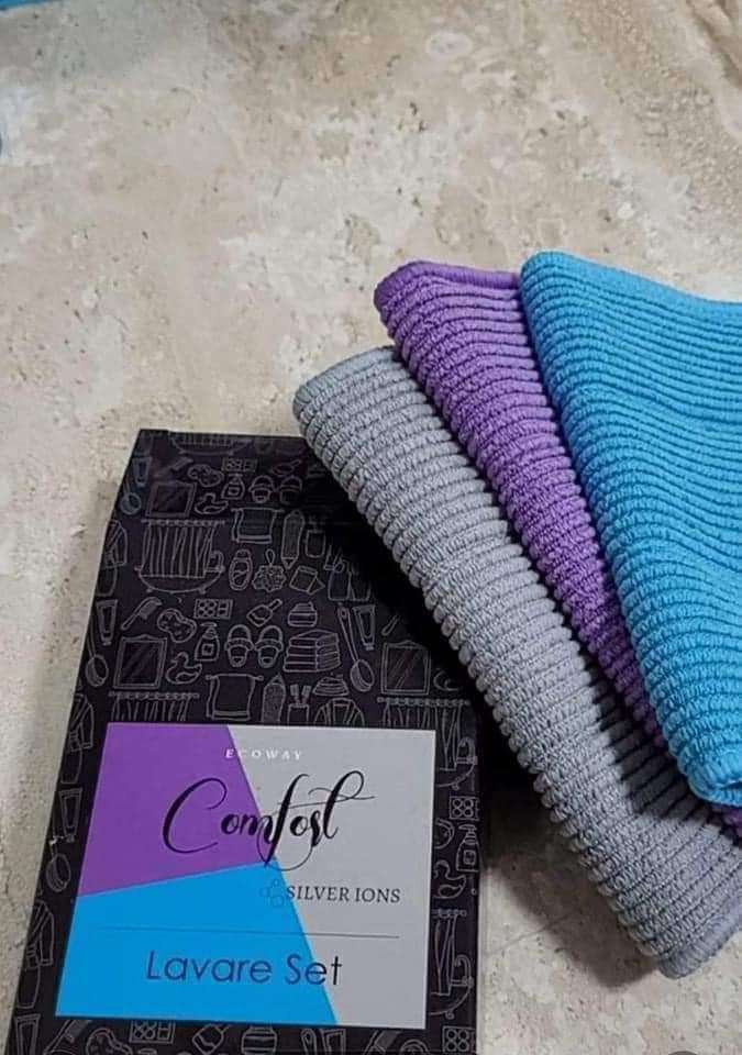 مجموعة فوط الحمام لافار سيت💜🩶💙 بجد رائعه في تنظيف الحمام ودي تجربة مميزة ليها في تنظيف كابينة الشاور وطبعا واضح الفرق قبل وبعد 😍 المميز انها ٣ فوط مخصصه لأجزاء الحمام المختلفه ✔️للحوض..لل