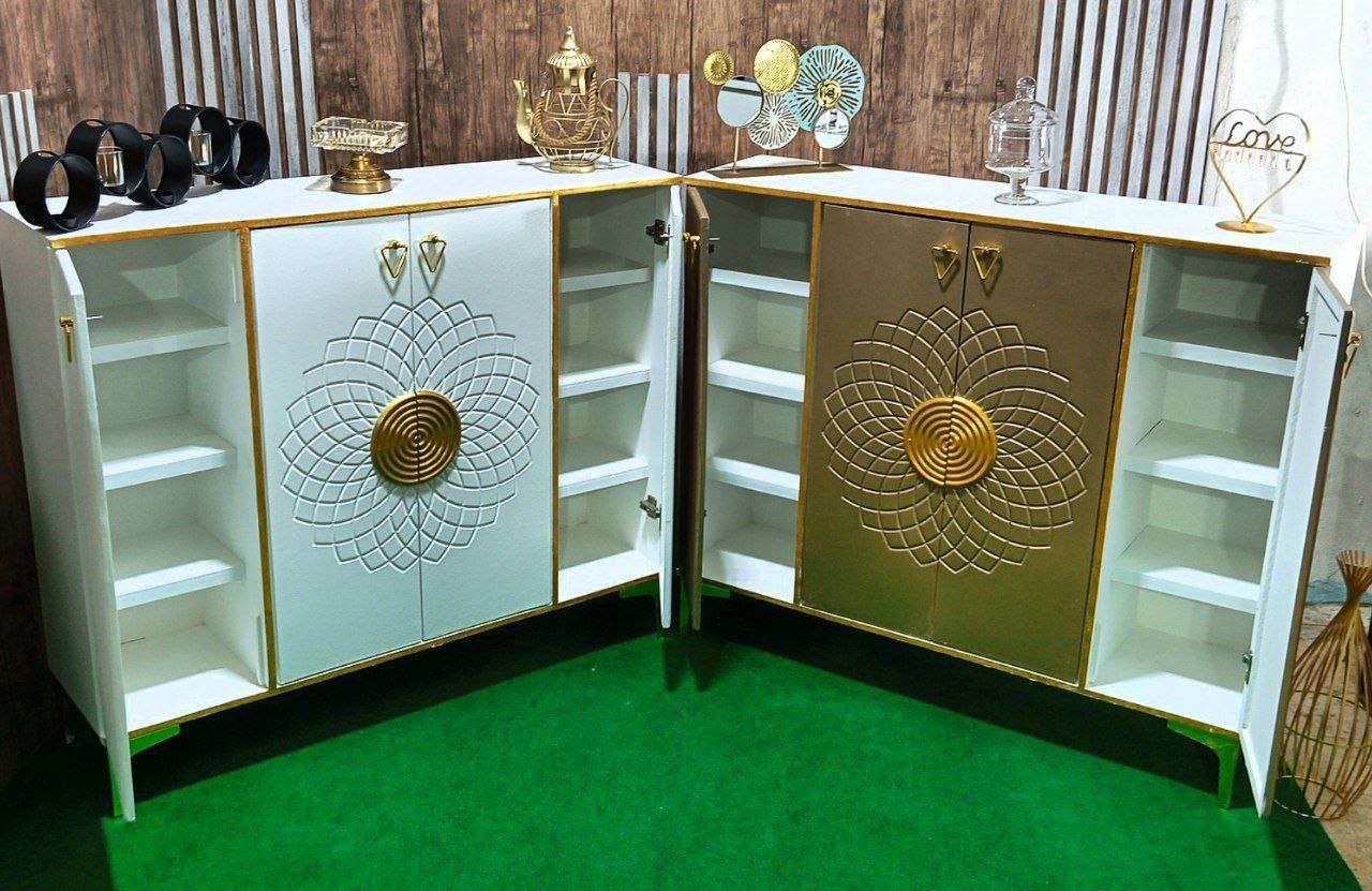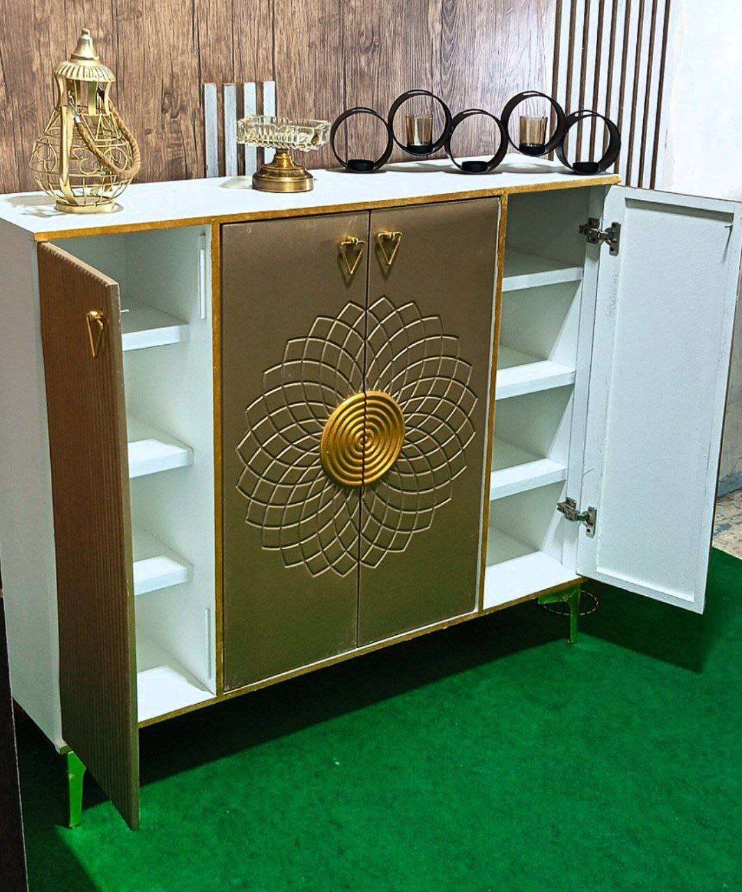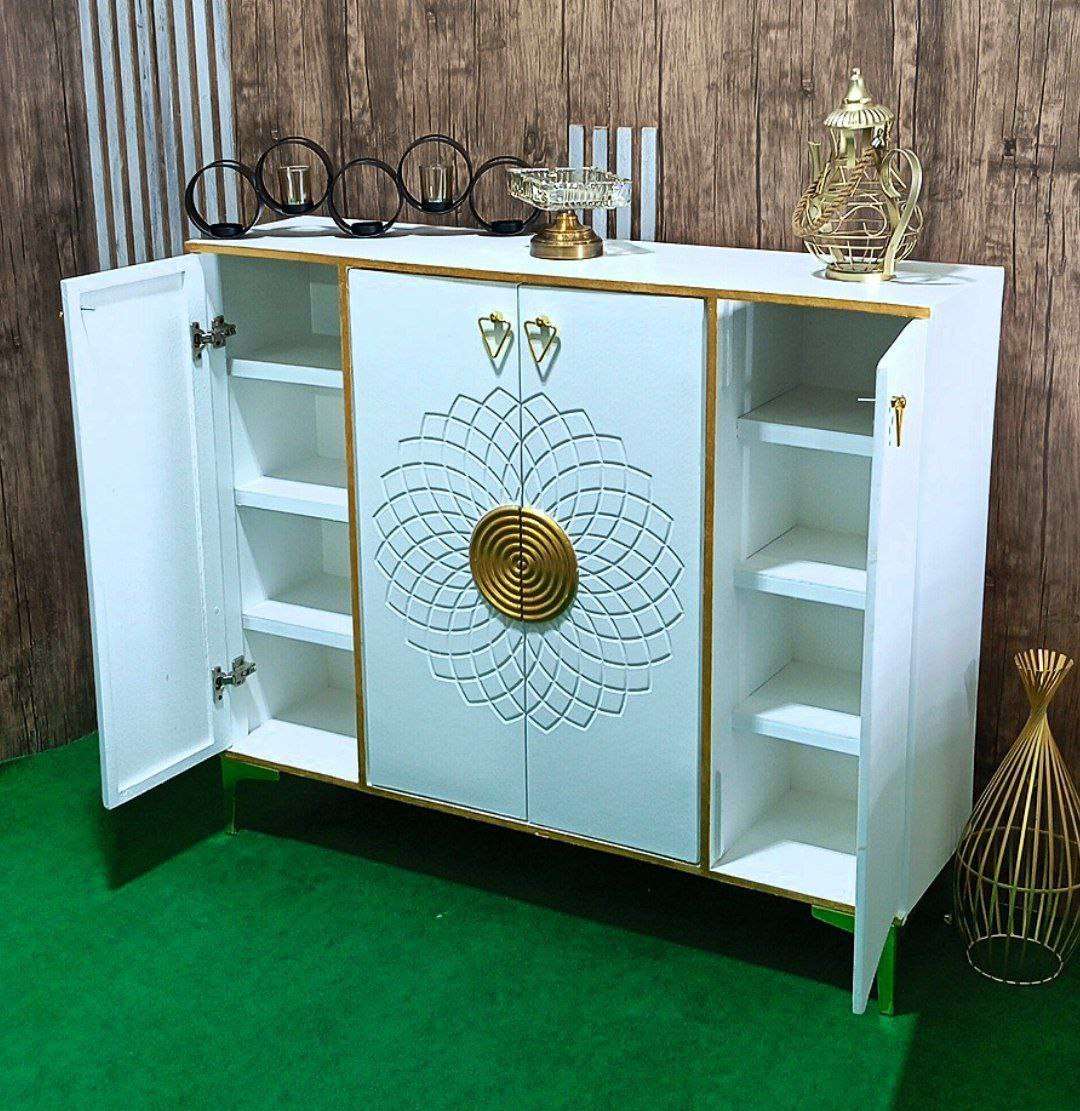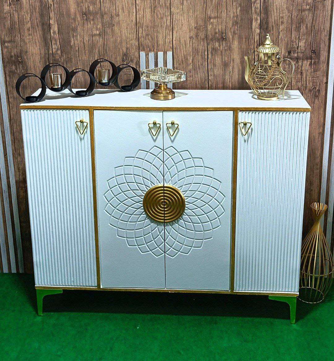 جزامة آو بوفيه الشمس 4 درفة خشب mdf اسباني ارجل استليس جولد ارتفاع 105 سم عرض 122 سم عمق 32 سم