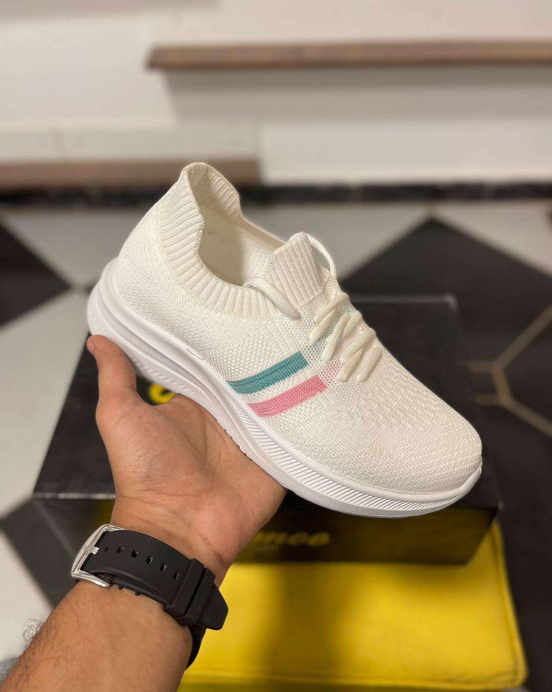 ستايل عصري بلمسة ناعمة 👟✨ لو بتدوري على سنيكرز مريح، خفيف، ويمشي مع كل لبسك، الموديل دا هو الحل! خامة مرنة + شكل مودرن + ألوان تليق على كل خروجة. ✅ خامة قماش مرن (Stretch knit) ✅ تهوية مم
